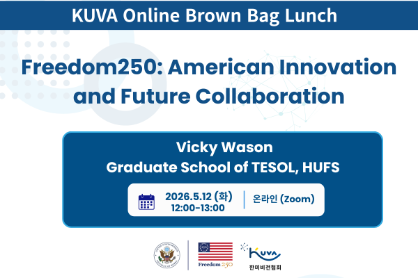 KUVA Online Brown Bag Lunch(BBL) Meetup은 사단법인 한미비전협회(KUVA)와 주한미국대사관(U.S. Embassy Seoul)이 함께하는 온라인 프로그램입니다.